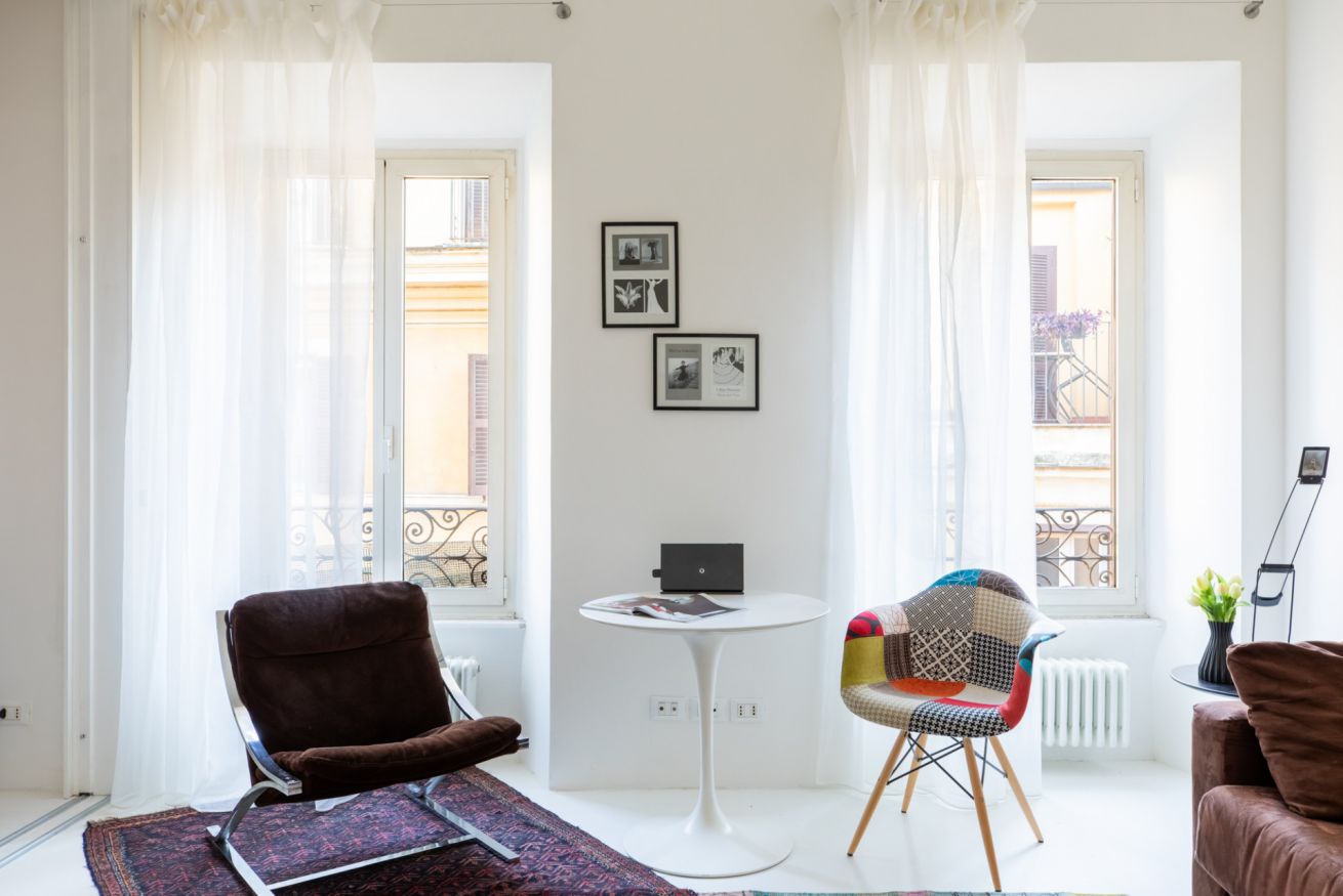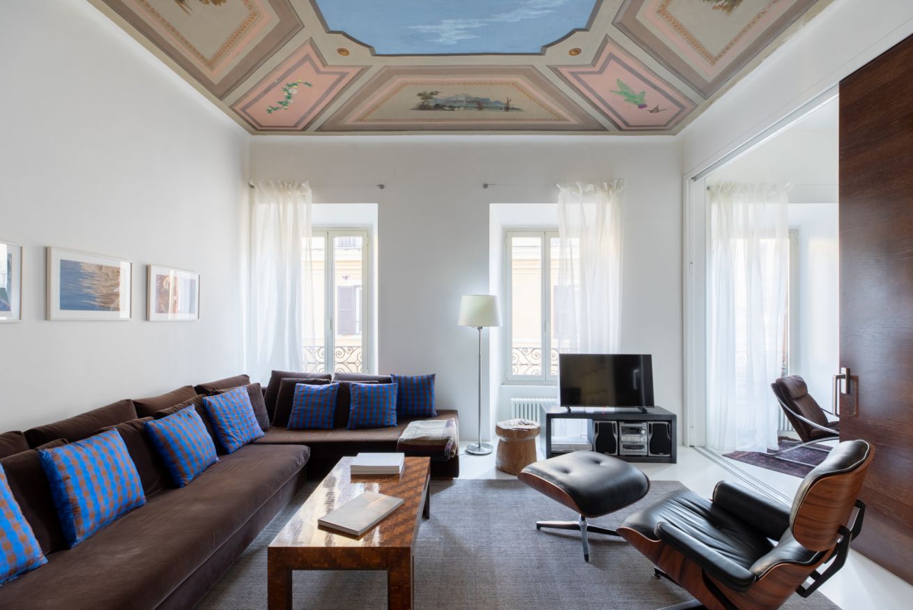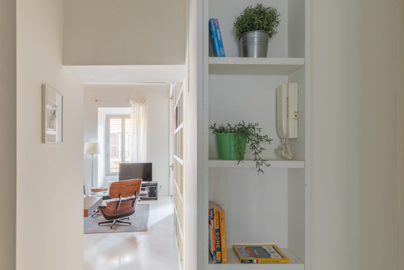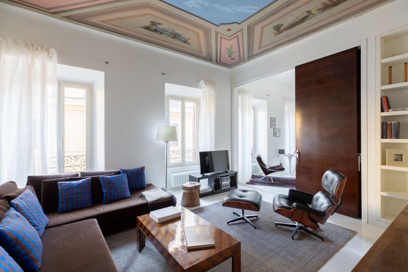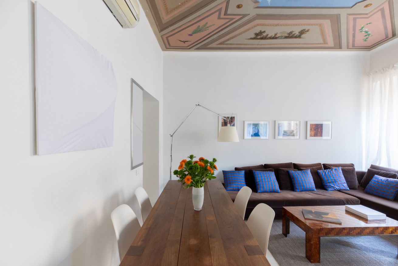 Located in Campo de' Fiori, a few steps away from the famous square with one of Rome's most characteristic markets, this design flat features a charming fresco in the living room and is the ideal solution to spend your holidays in the Eternal City.