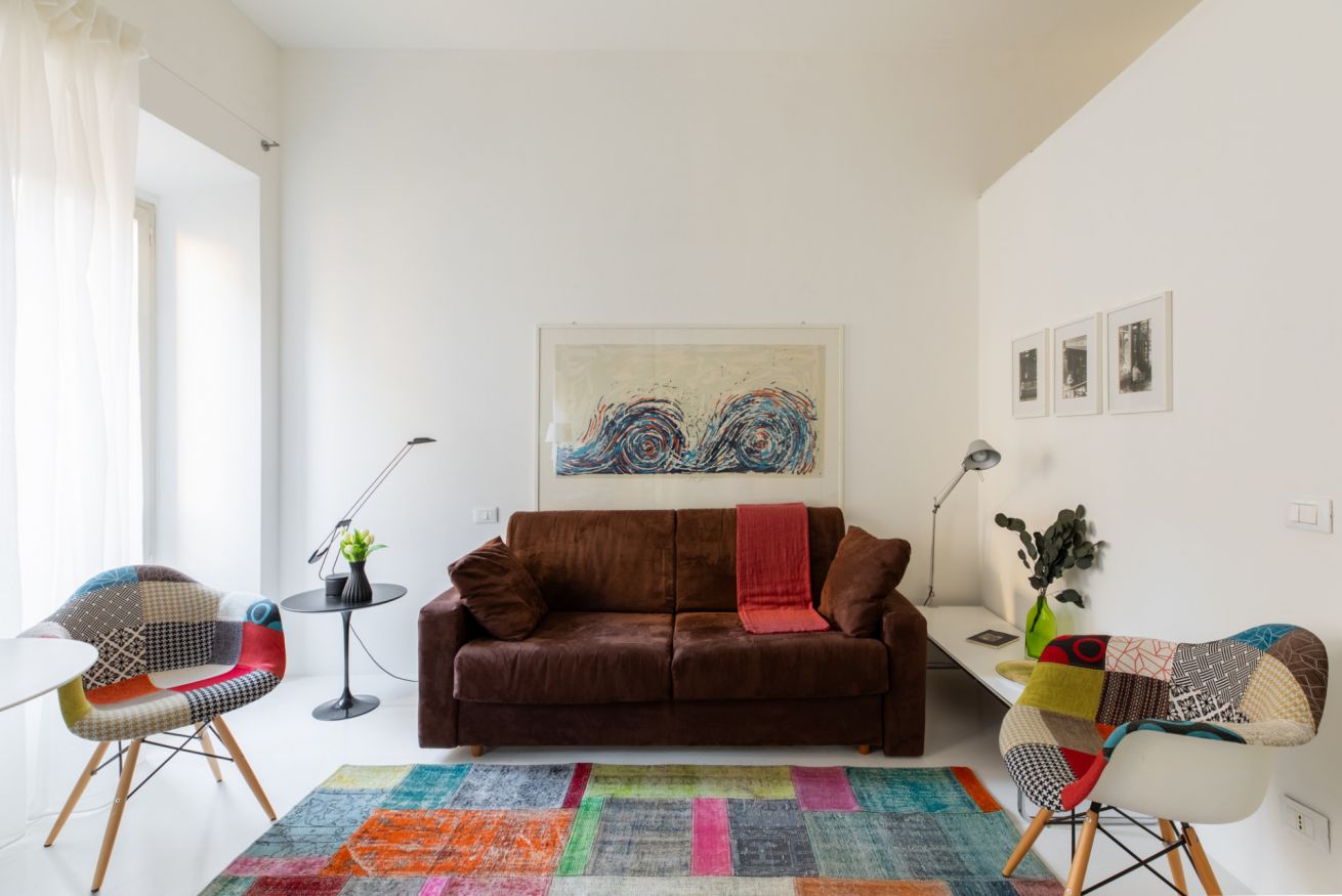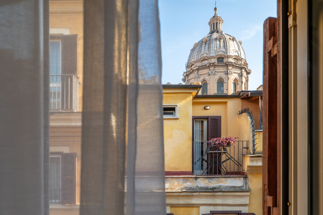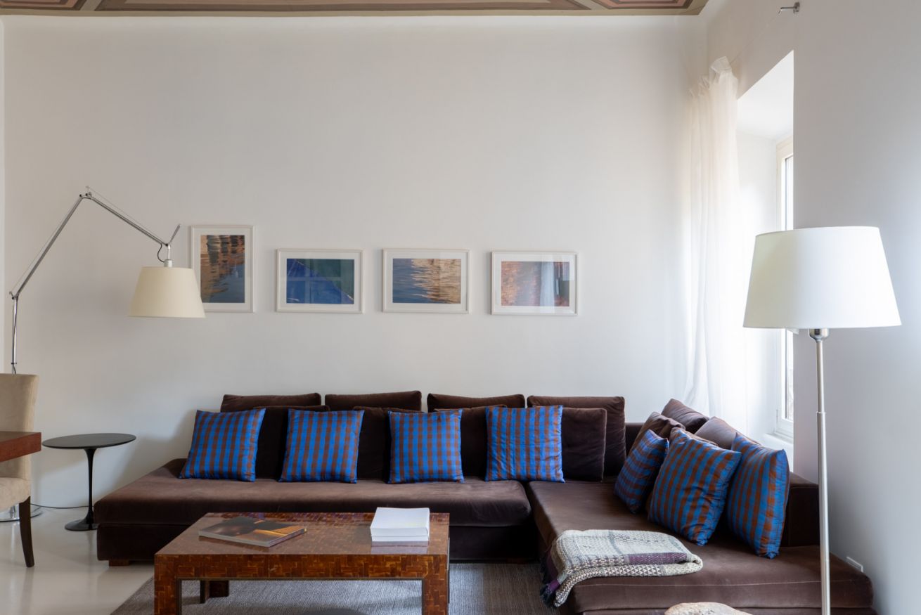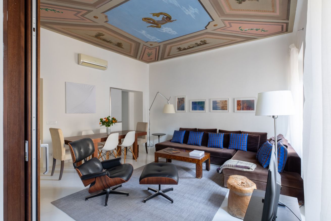 Located in Campo de' Fiori, a few steps away from the famous square with one of Rome's most characteristic markets, this design flat features a charming fresco in the living room and is the ideal solution to spend your holidays in the Eternal City.