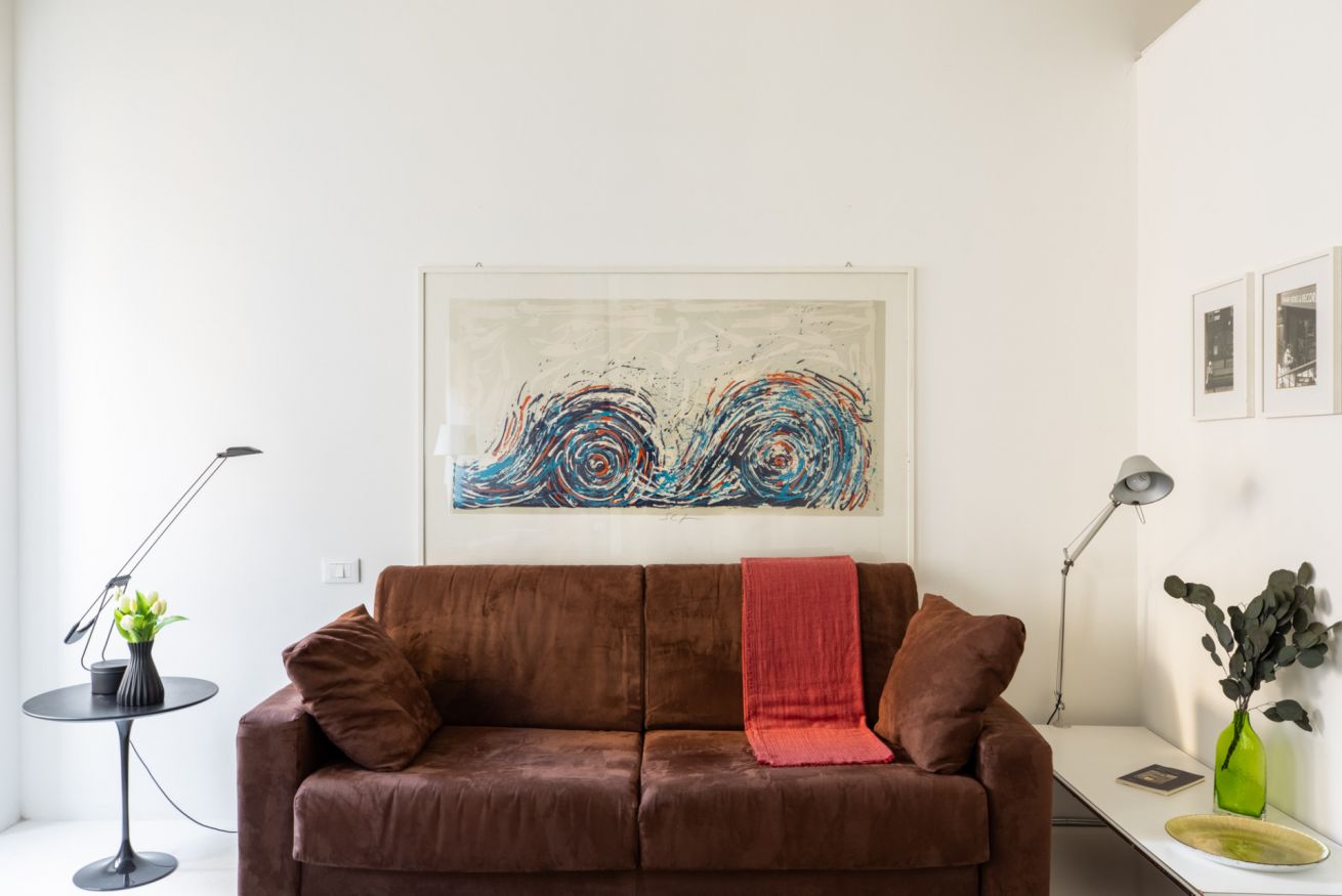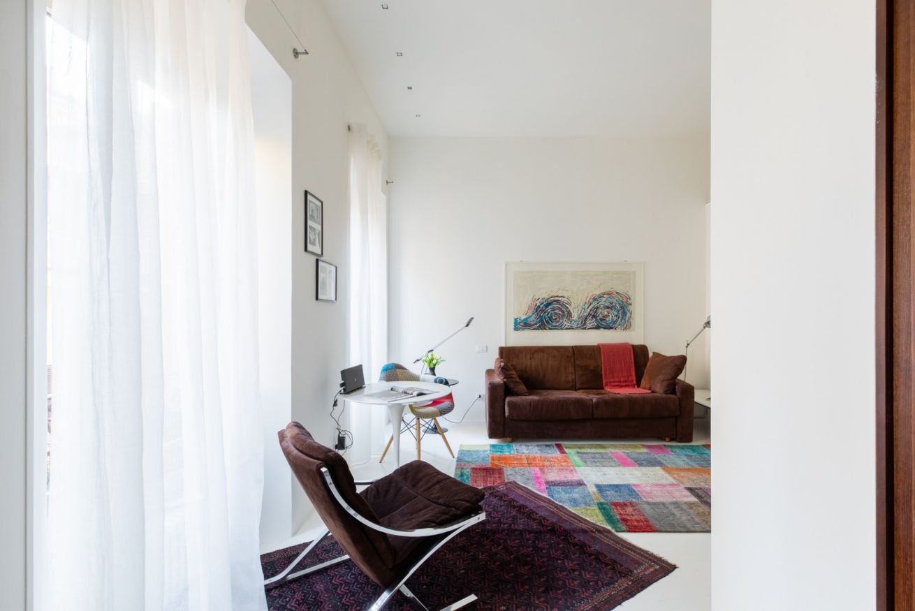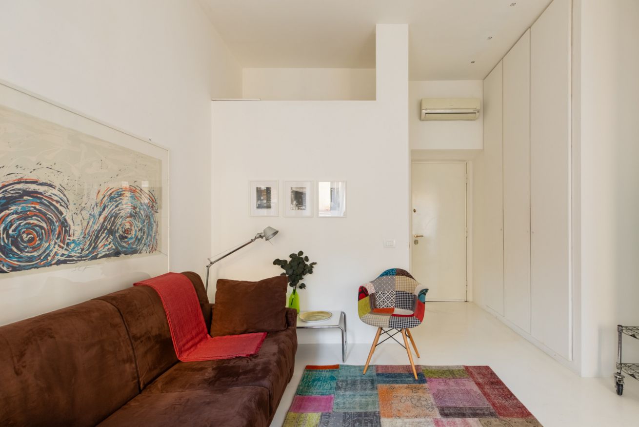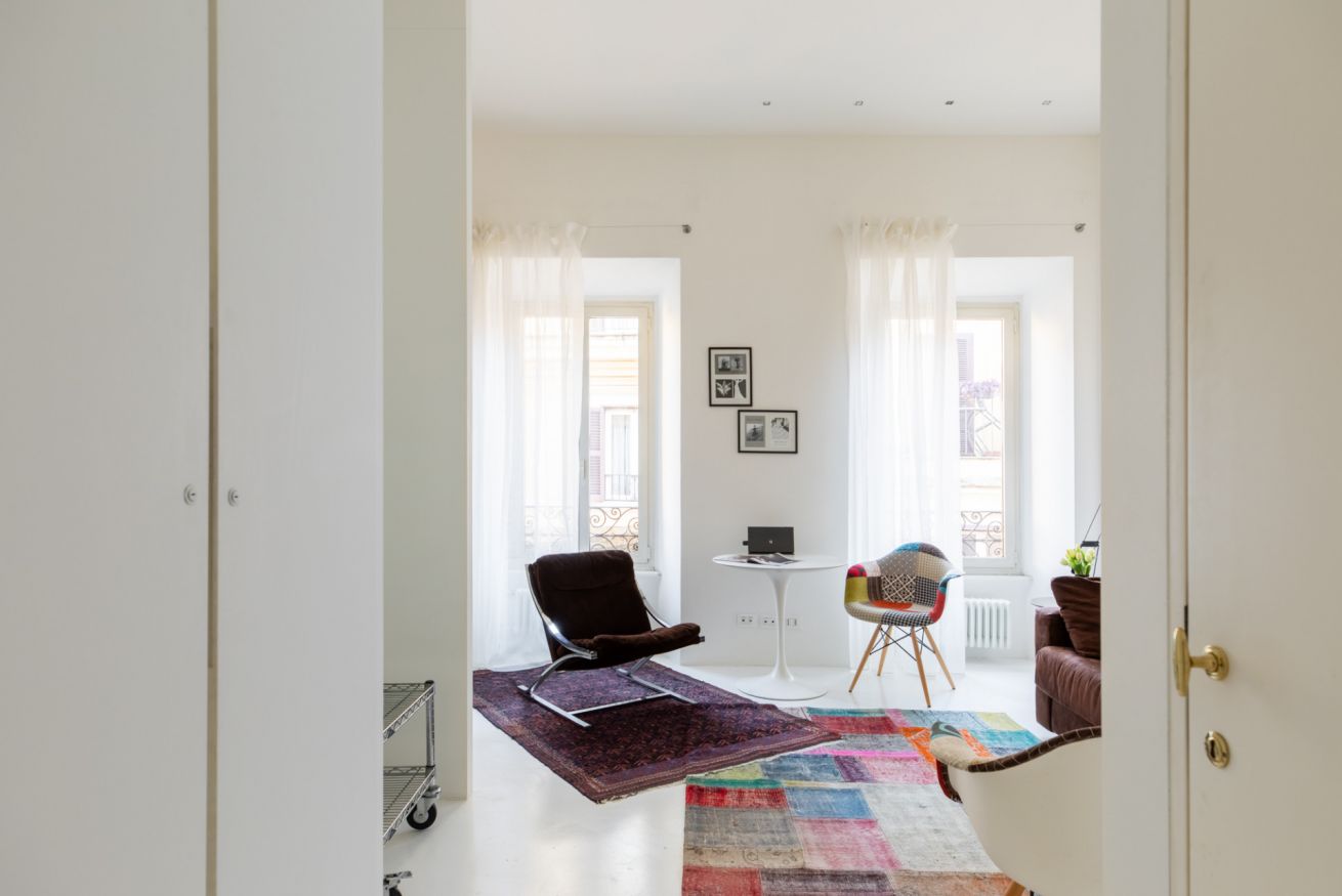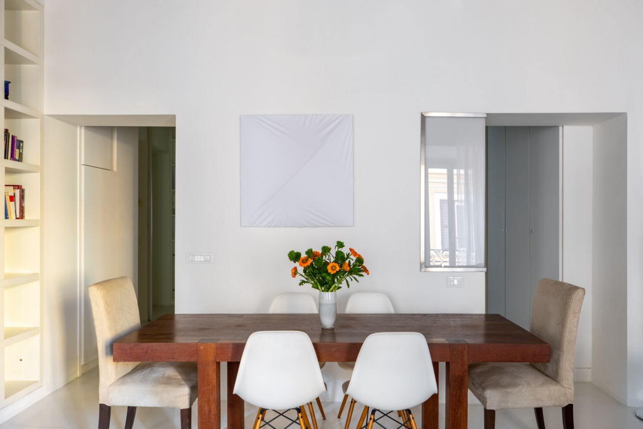 Located in Campo de' Fiori, a few steps away from the famous square with one of Rome's most characteristic markets, this design flat features a charming fresco in the living room and is the ideal solution to spend your holidays in the Eternal City.