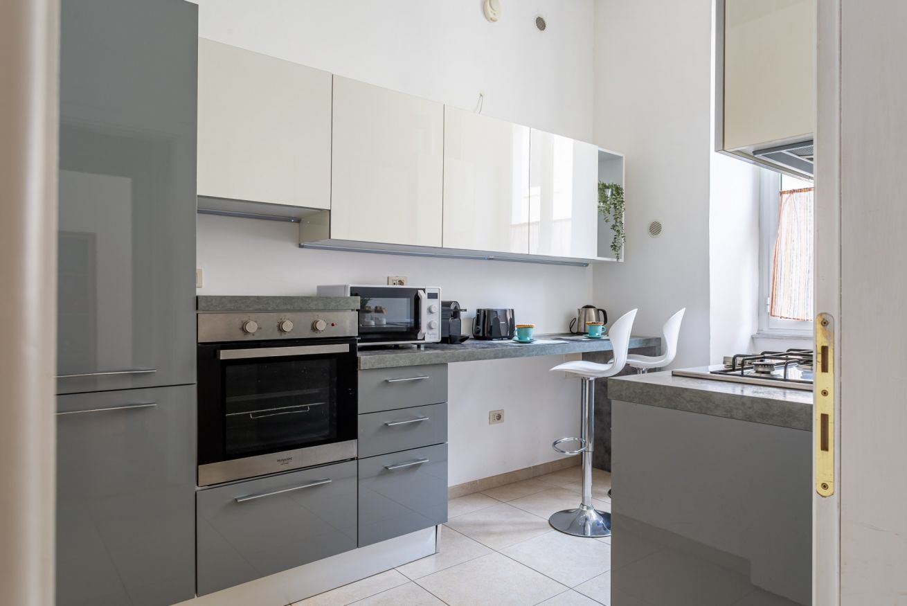 Bright and spacious apartment located in the prestigious Prati district, just a few steps from St. Peter’s Basilica, the Vatican Museums, Castel Sant’Angelo, and the main attractions of the historic center. Set in a well-connected area rich in services, it is ideal both for first-time visitors and for those planning a longer stay in Rome. Thanks to its large and welcoming spaces, it is perfect for families, couples, and groups looking to enjoy an authentic experience in the heart of the capital.