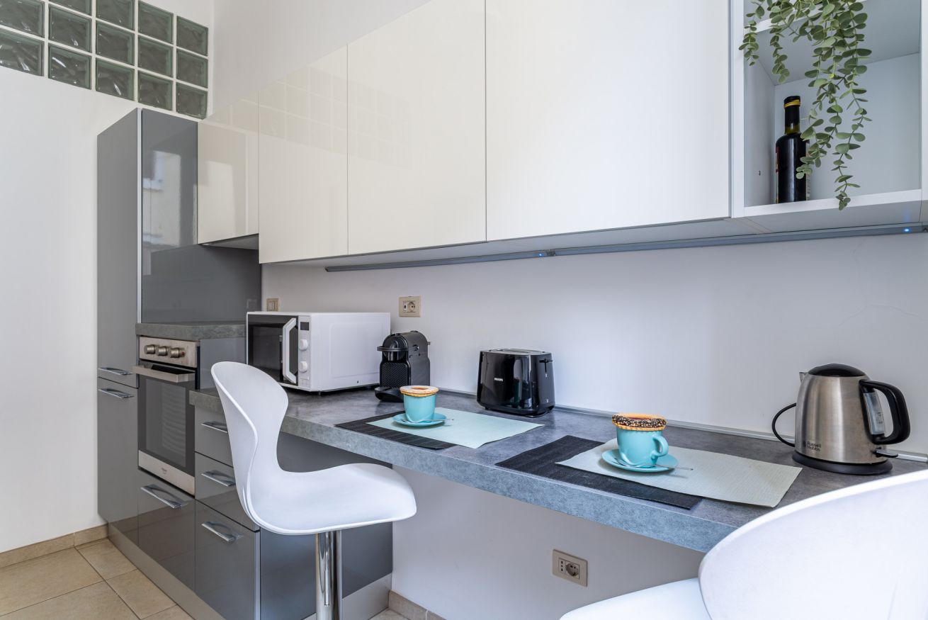 The apartment features Wi-Fi, air conditioning, and all essential amenities.