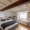 This spacious and bright accommodation surprises with its unique style. The parquet floor and the ceiling with ancient wooden beams give an extraordinary harmony.
