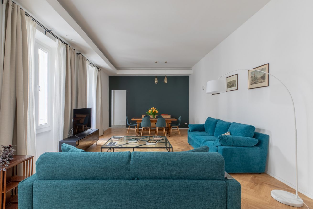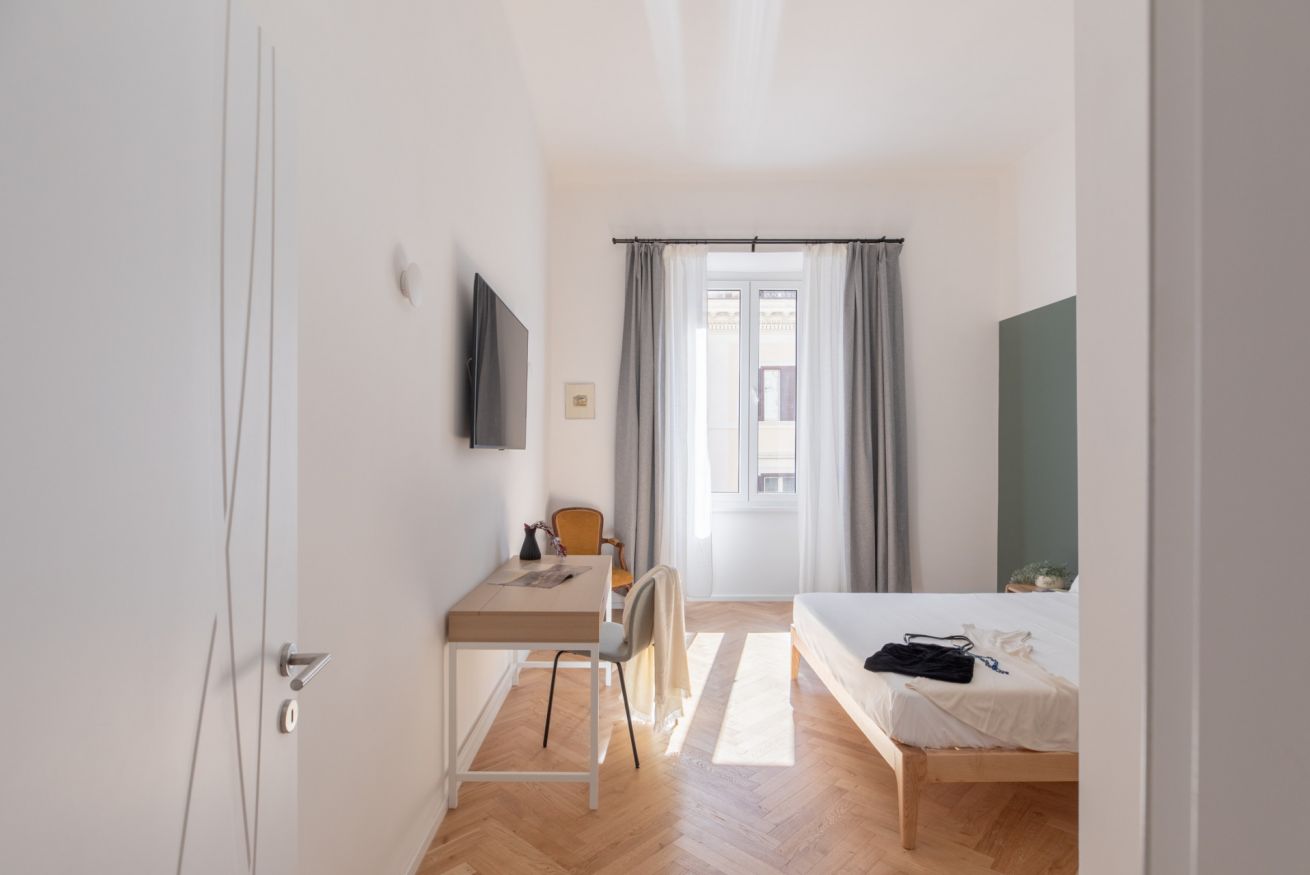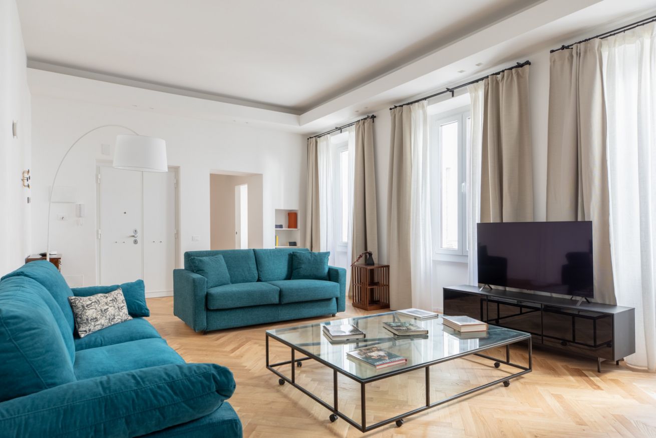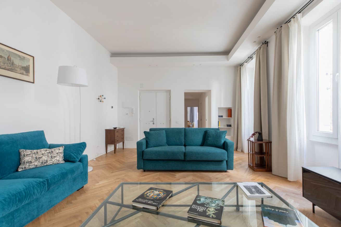 The sleeping area features two spacious double bedrooms, a single bedroom equipped with all amenities and two full bathrooms, ensuring comfort, privacy, and an elegant atmosphere for all guests. Recently renovated and tastefully furnished, this apartment is the perfect choice for anyone wishing to experience Rome in total comfort and style.