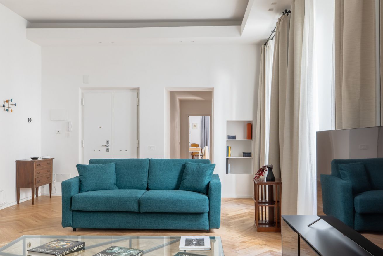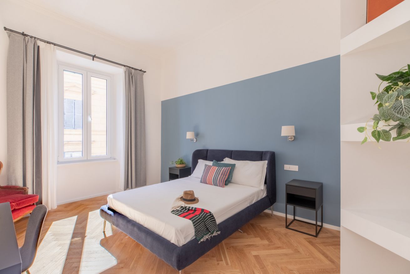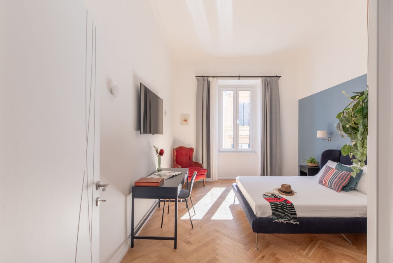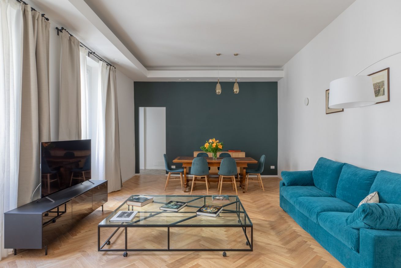 The sleeping area features two spacious double bedrooms, a single bedroom equipped with all amenities and two full bathrooms, ensuring comfort, privacy, and an elegant atmosphere for all guests. Recently renovated and tastefully furnished, this apartment is the perfect choice for anyone wishing to experience Rome in total comfort and style.