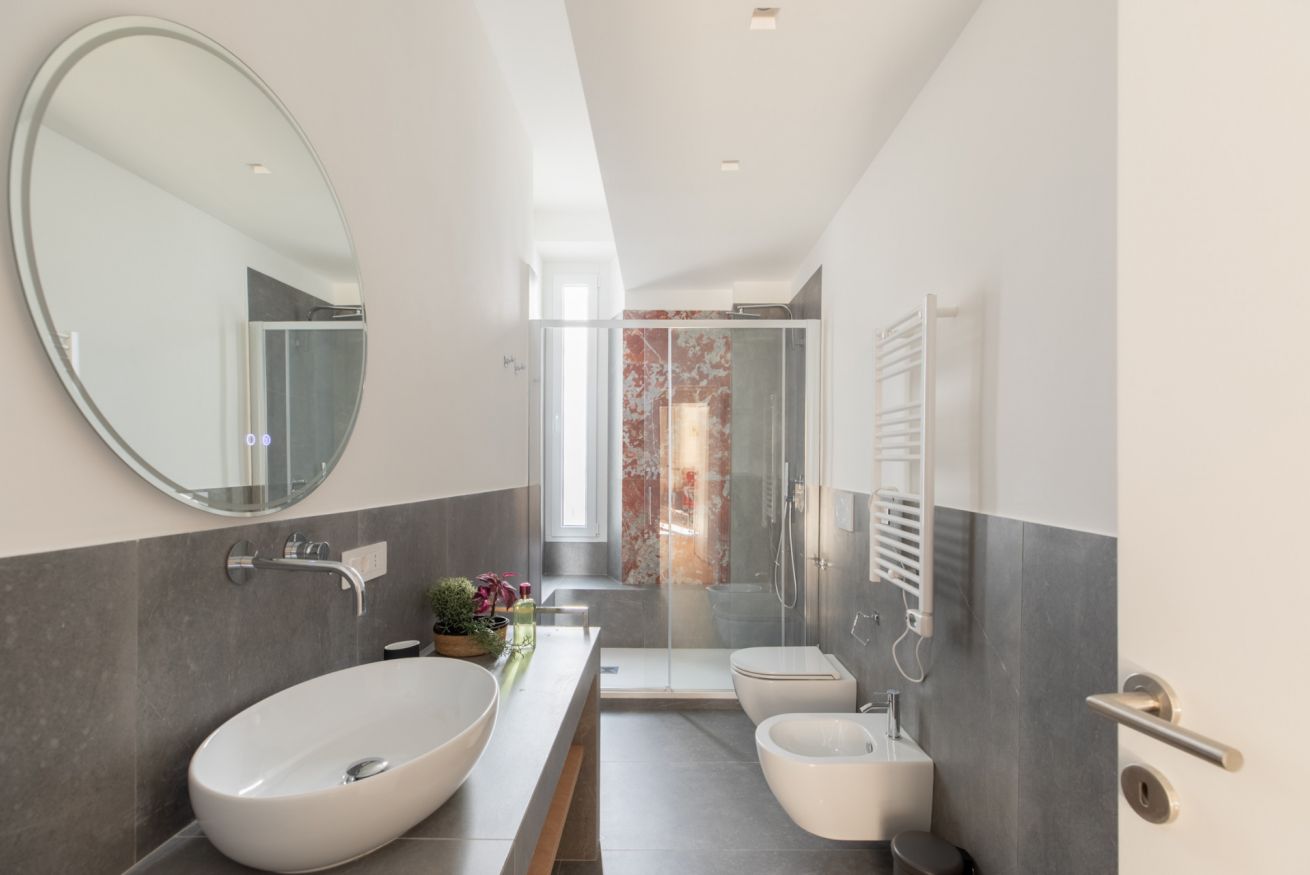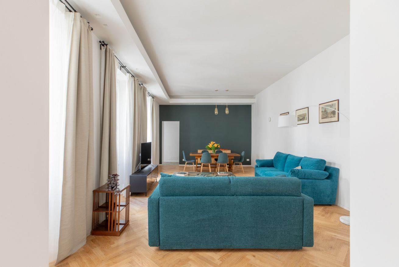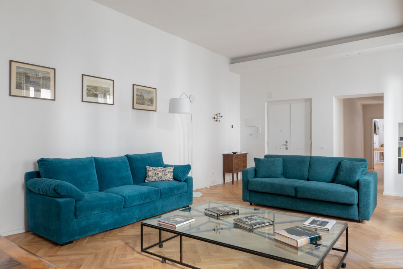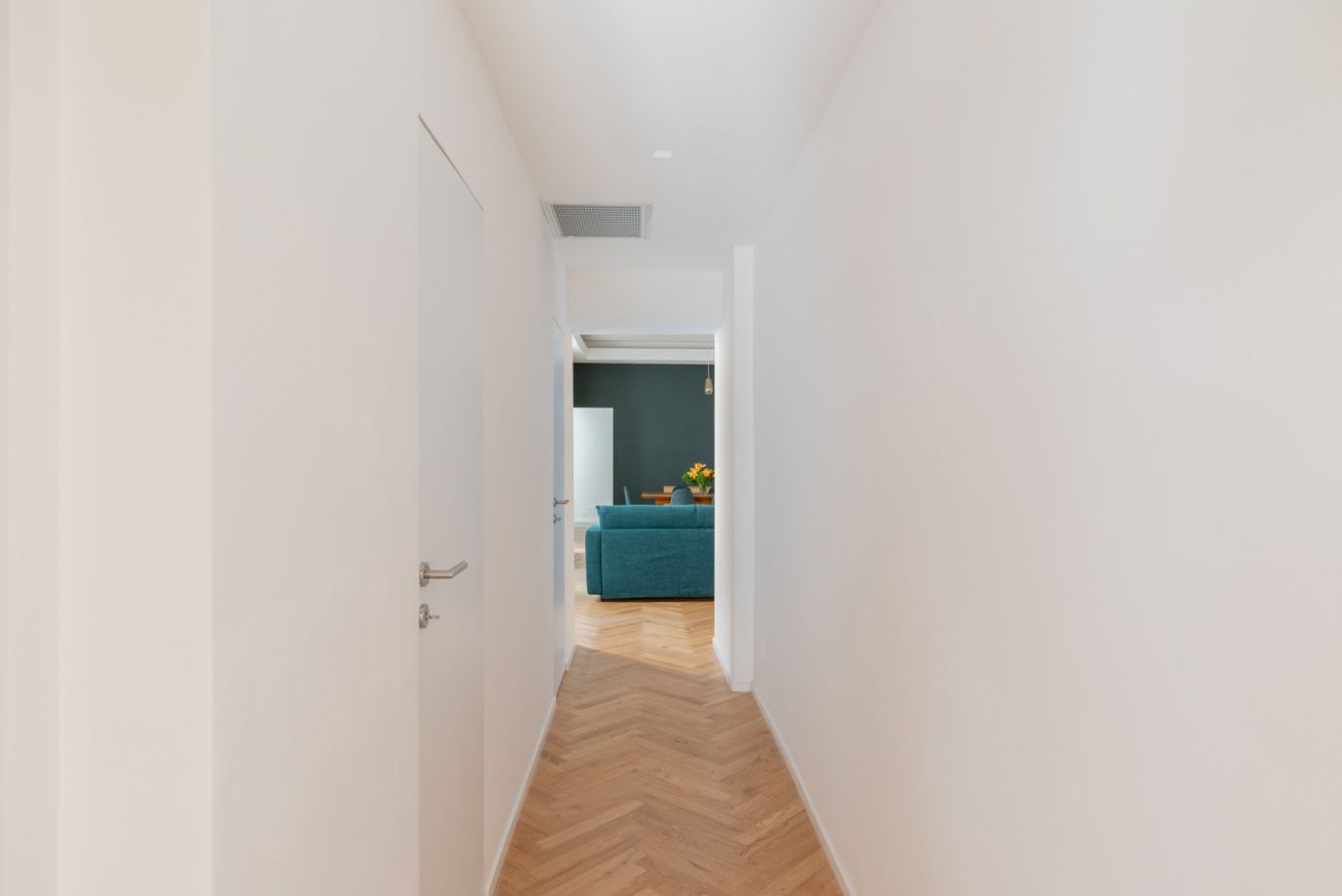 The sleeping area features two spacious double bedrooms, a single bedroom equipped with all amenities and two full bathrooms, ensuring comfort, privacy, and an elegant atmosphere for all guests. Recently renovated and tastefully furnished, this apartment is the perfect choice for anyone wishing to experience Rome in total comfort and style.
