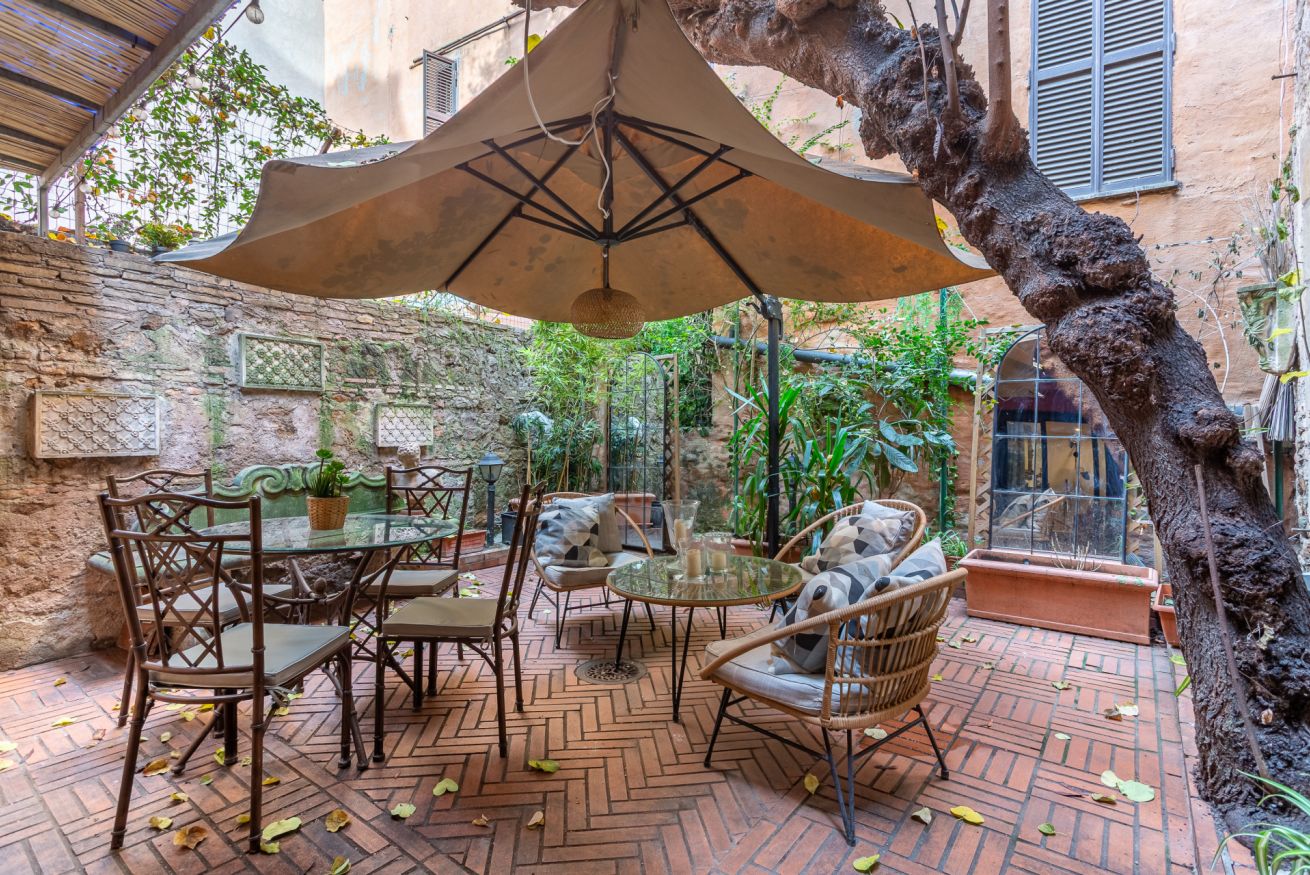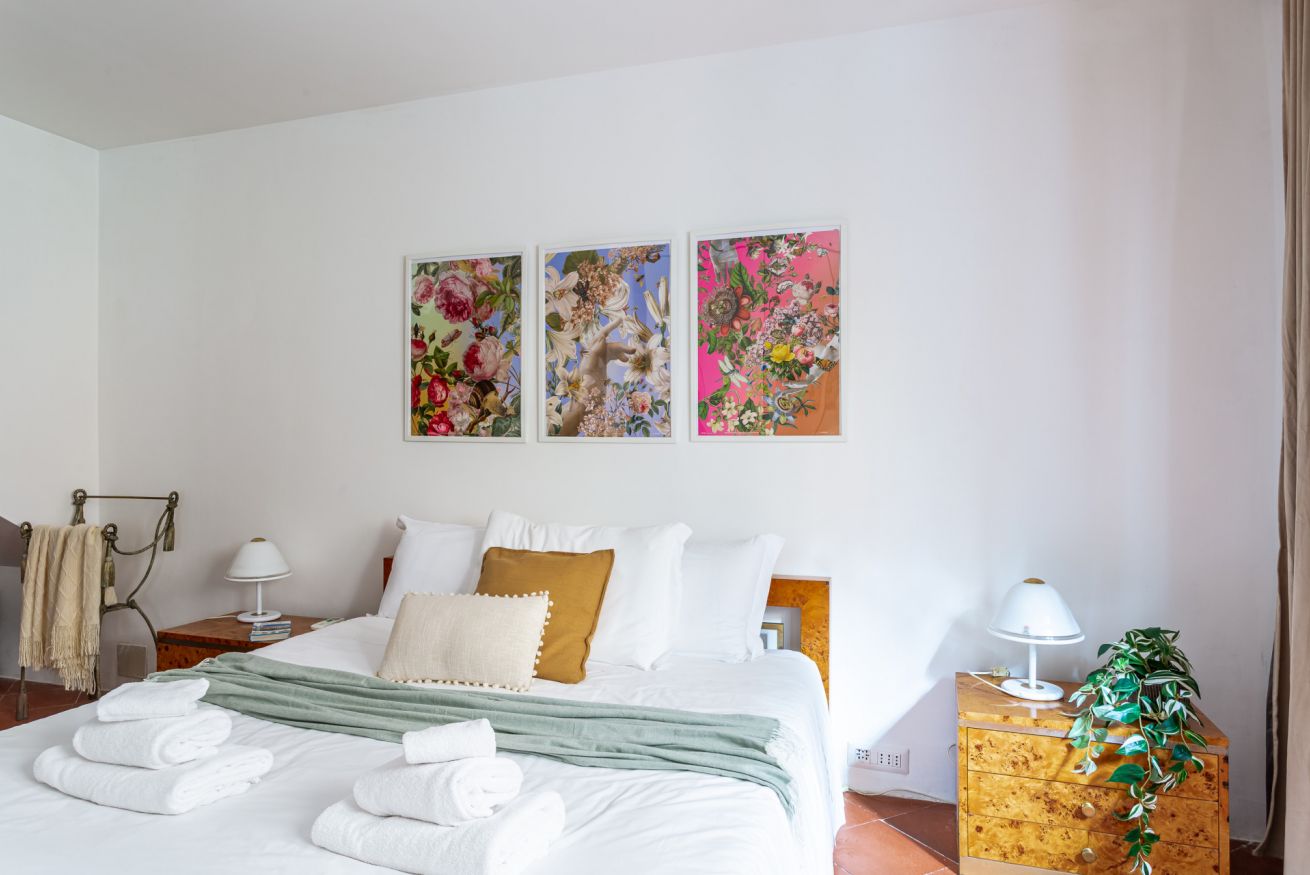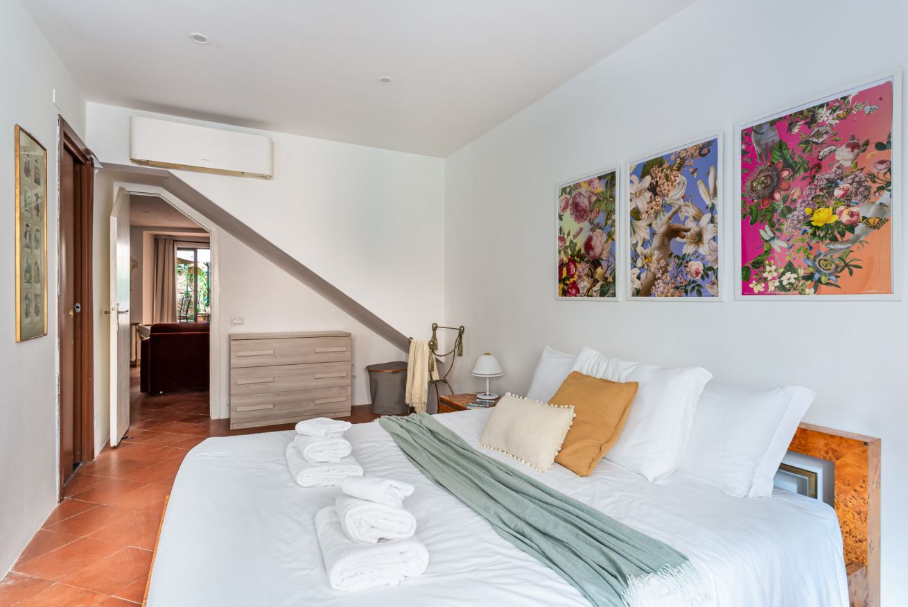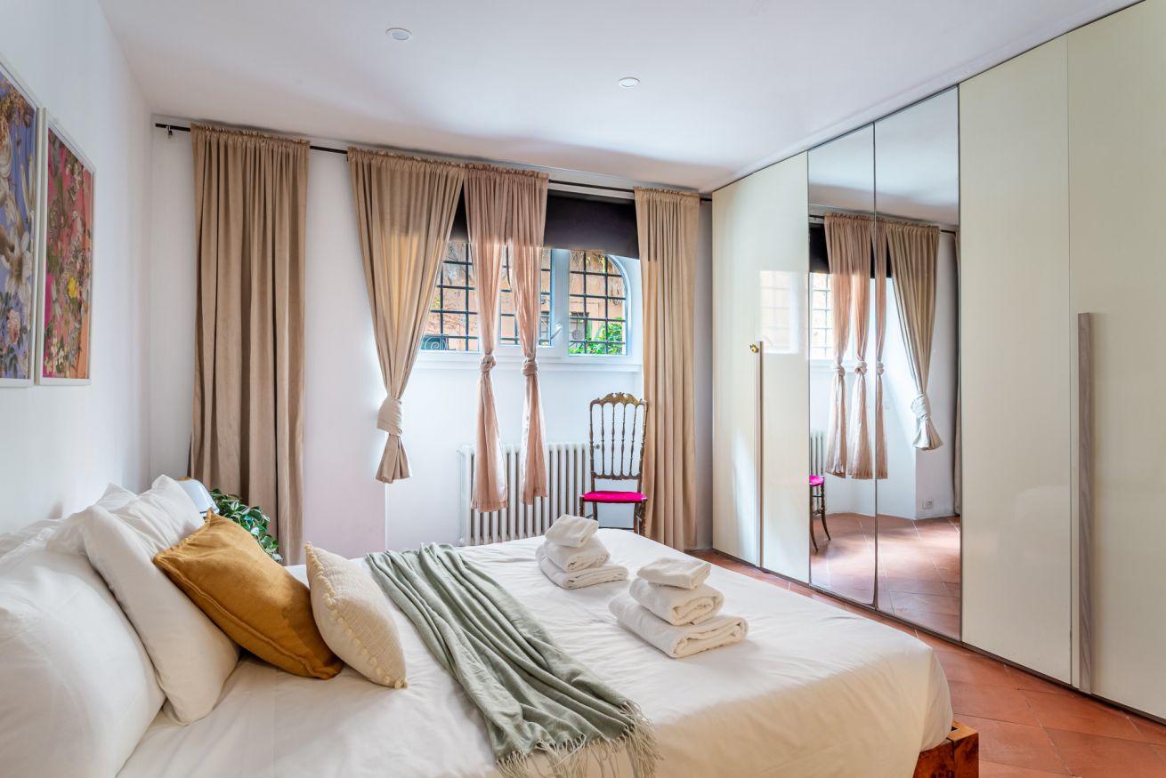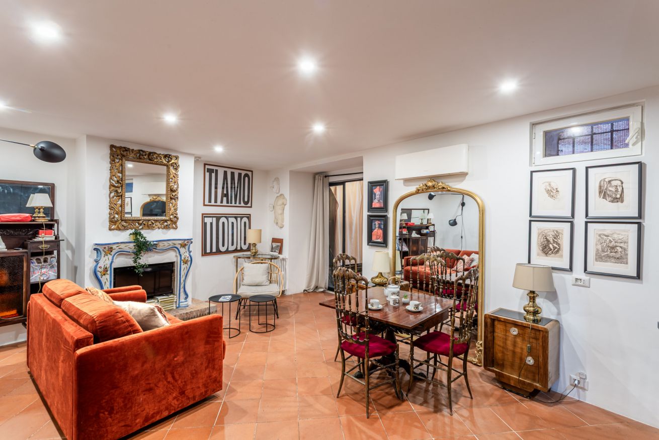 The double bedroom features an en-suite bathroom, ensuring privacy and convenience. The apartment also opens onto a charming private garden, enriched by the remains of ancient walls and a relaxing area, ideal for enjoying pleasant moments outdoors.