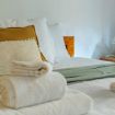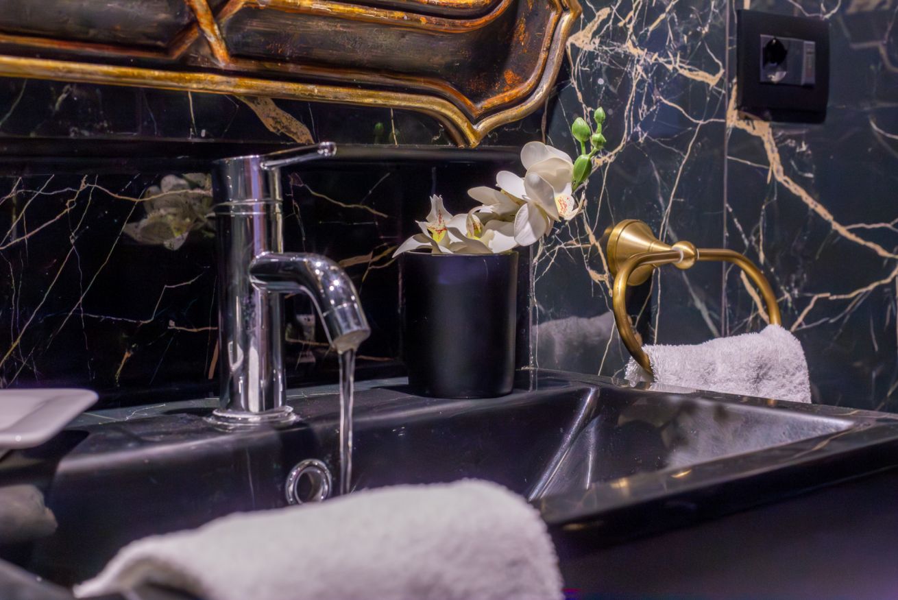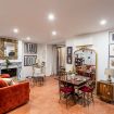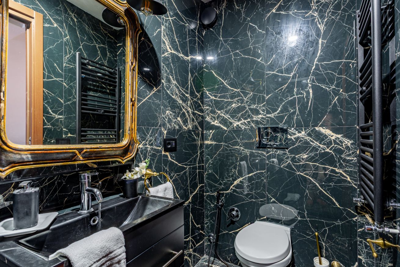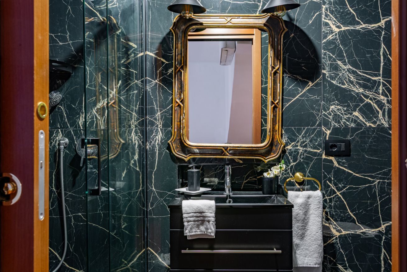Located on the ground floor, this elegant apartment combines modern comfort with historic charm. The entrance opens onto a bright living area with a fully equipped kitchenette and a comfortable sofa bed, perfect for relaxing or accommodating extra guests.
