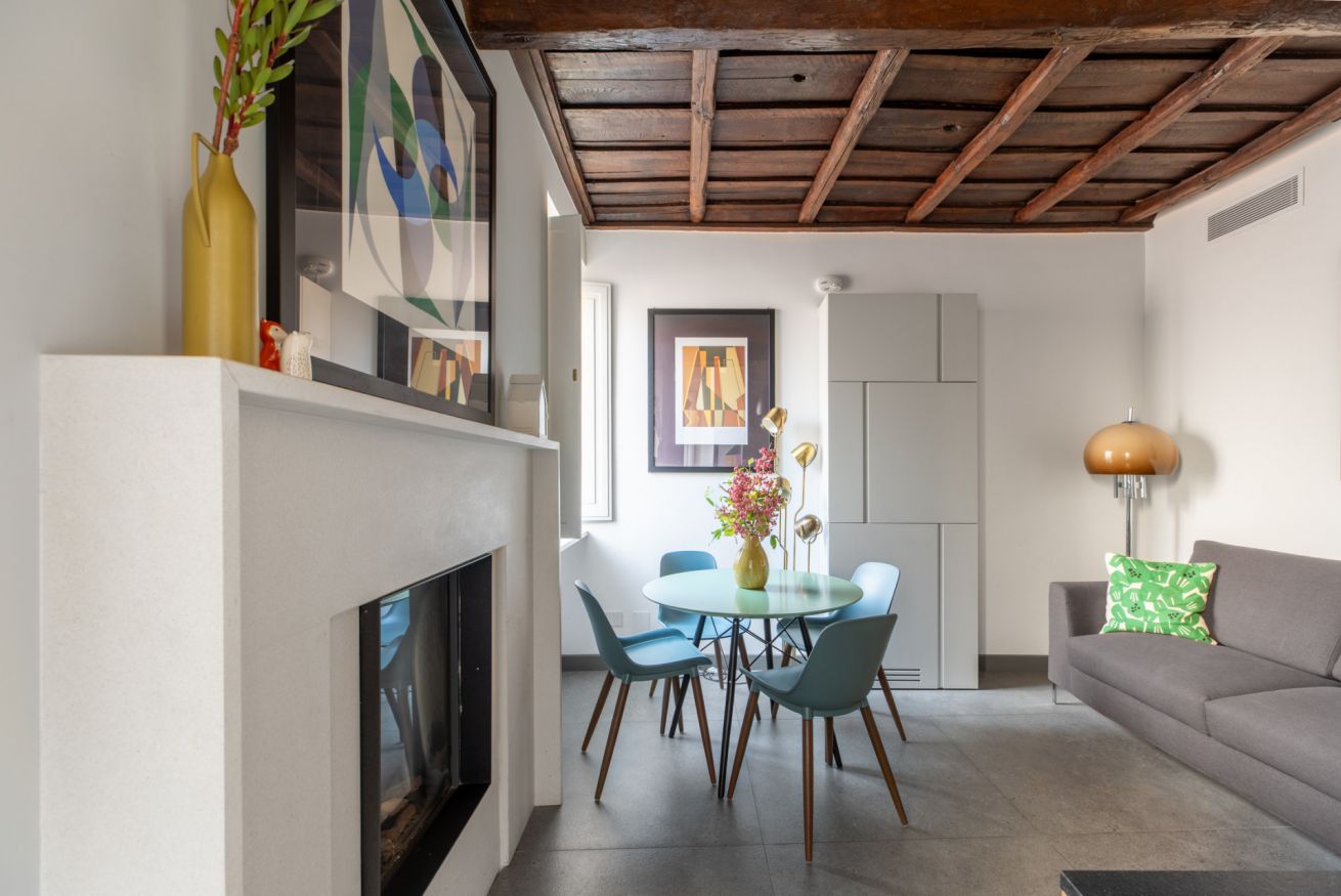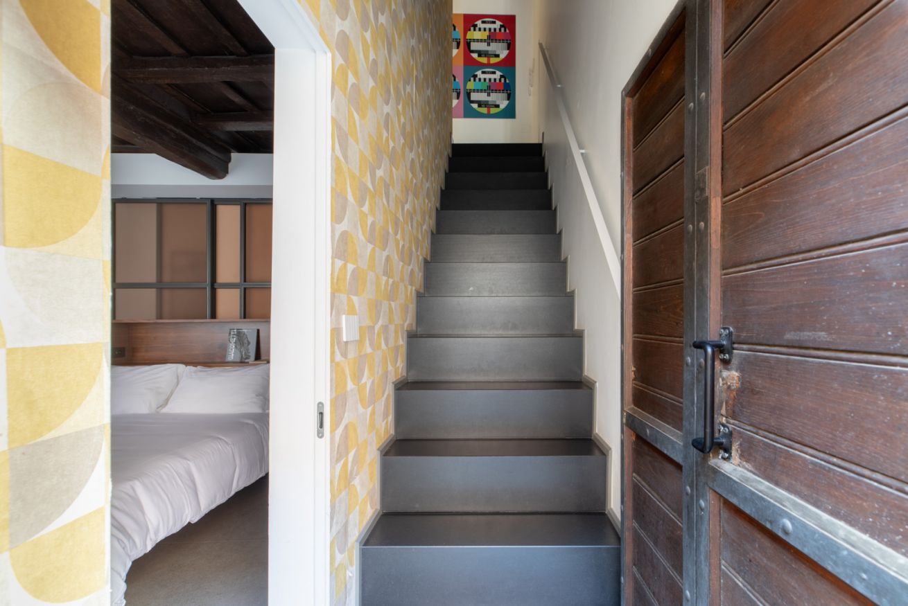Monti Apartment in Medieval Building is a jewel of home automation, with an elegant and refined design and architecture. An entire three-storey building in the heart of Rione Monti, equipped with every comfort, including a fireplace. Its characteristics together with the position make it a unique place to spend unforgettable moments. A few steps from the Colosseum and the major attractions that the Eternal City offers. A/C and free WiFi provided.
